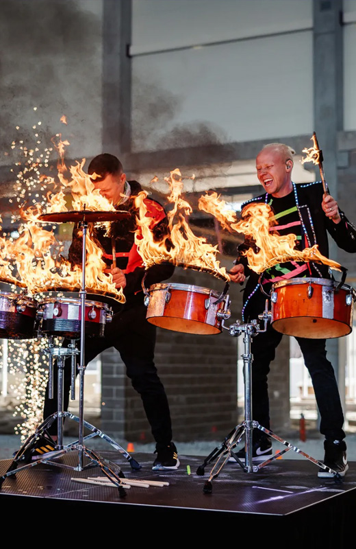 A spectacular performance that combines a powerful drum show with pyrotechnic effects. Suitable for both indoor and outdoor events.